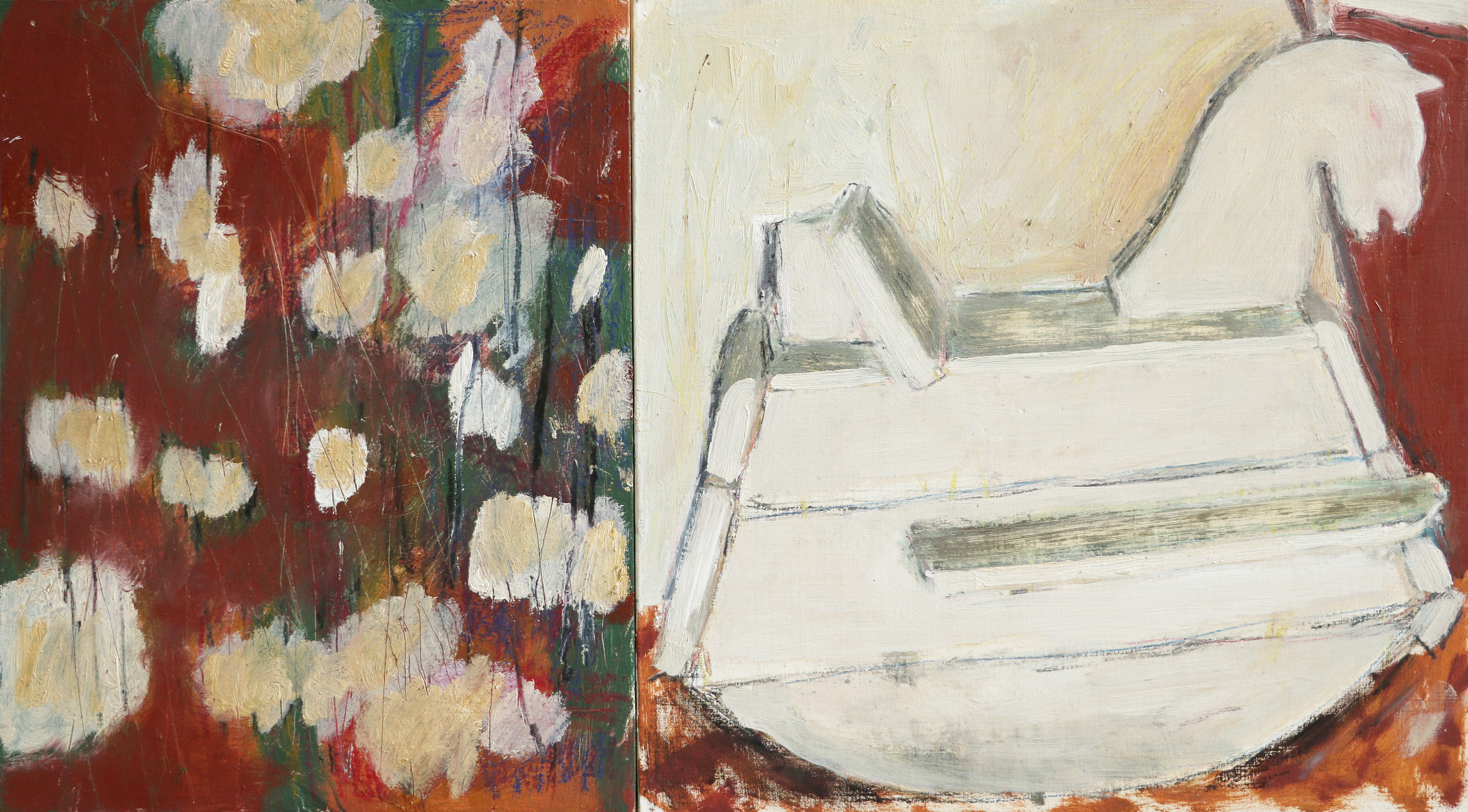 38 x 68,5 cm (Dyptichon), Mischtechnik auf Holz